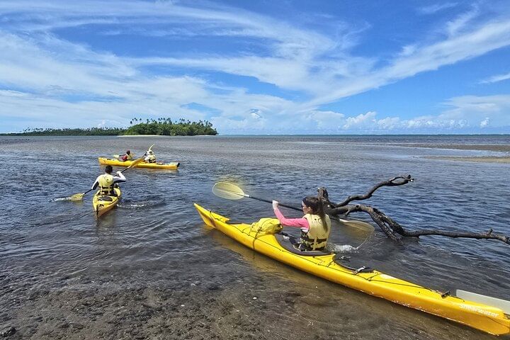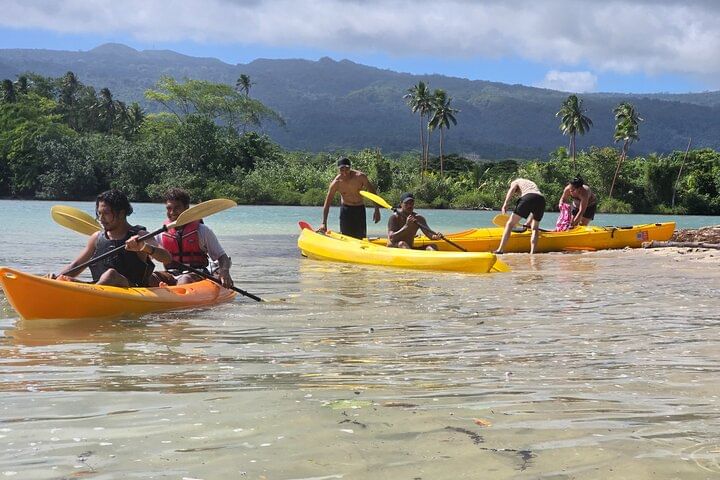 Vai Villas Samoa, an authentic and rich blend of sustainability, ecology, culture, marine exercise and fun; the launching point for our waterborne experience. Kayak or paddleboard through the overhanging mangroves, twisting and turning your way 1.5km to the beach on the lagoon of Safata Bay. Break here for a dip. Then paddle across to shallow open waters of the Safata Bay lagoon to an otherwise inaccessible, isolated and pristine beach at the end of the peninsula opposite for lunch. Return through the mangroves to Vai Villa Lodge.